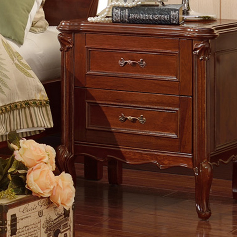 摩卡风情 美式床头柜复古实木床边柜橡木床头储物收纳柜卧室家具