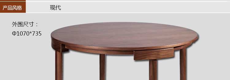 外围尺寸:Φ1070*735(胡桃木木皮, 胡桃木实木脚)