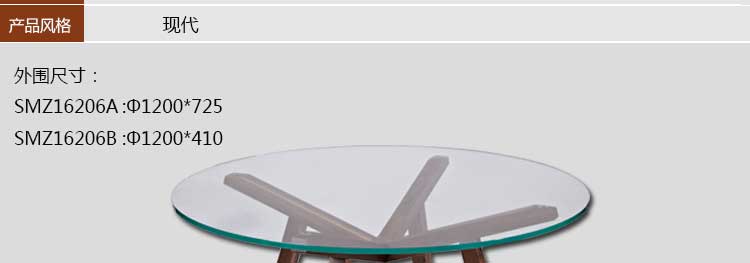 外围尺寸:SMZ16206A:Φ1200*725; SMZ16206B:Φ1200*410。 (15mm 钢化玻璃 净玻 美国胡桃木实木脚)