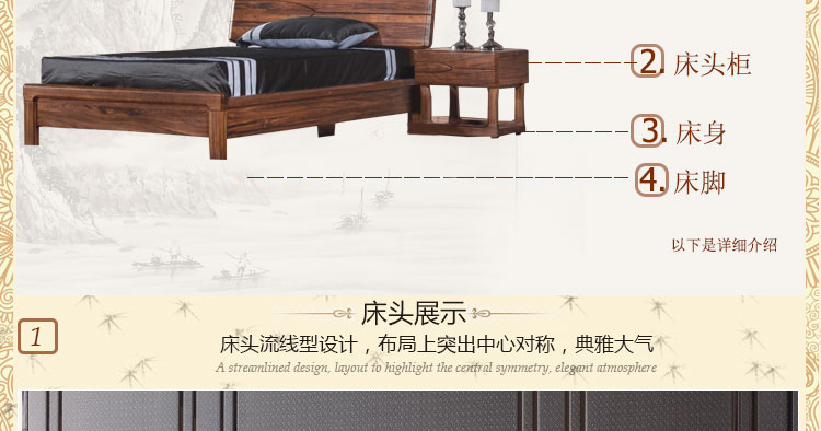 双李家具 实木床 双人床 高档全实木家具 现代新中式 大床卧室家具 SL-A-Y-C1 SL-A-B