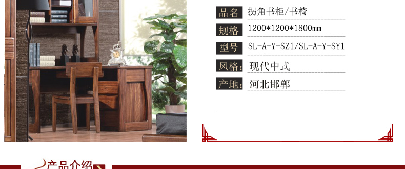 双李家具 书柜书椅自由组合书柜书架简约现代中式实木转角书柜办公置物架书橱SL-A-Y-SZ1 SL