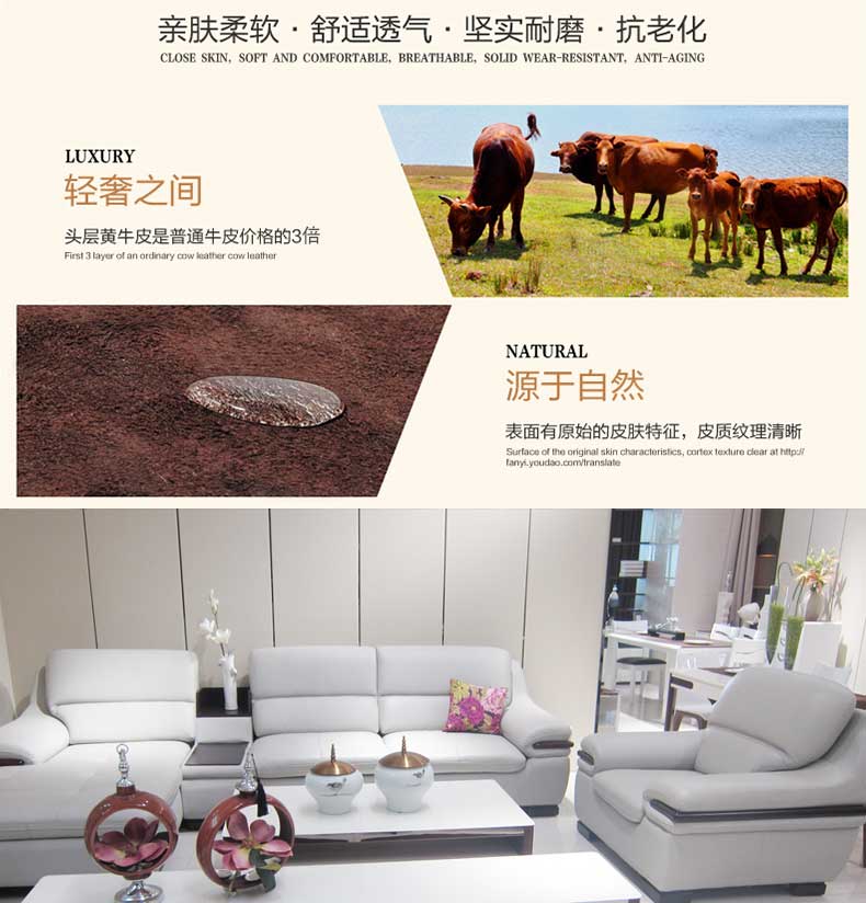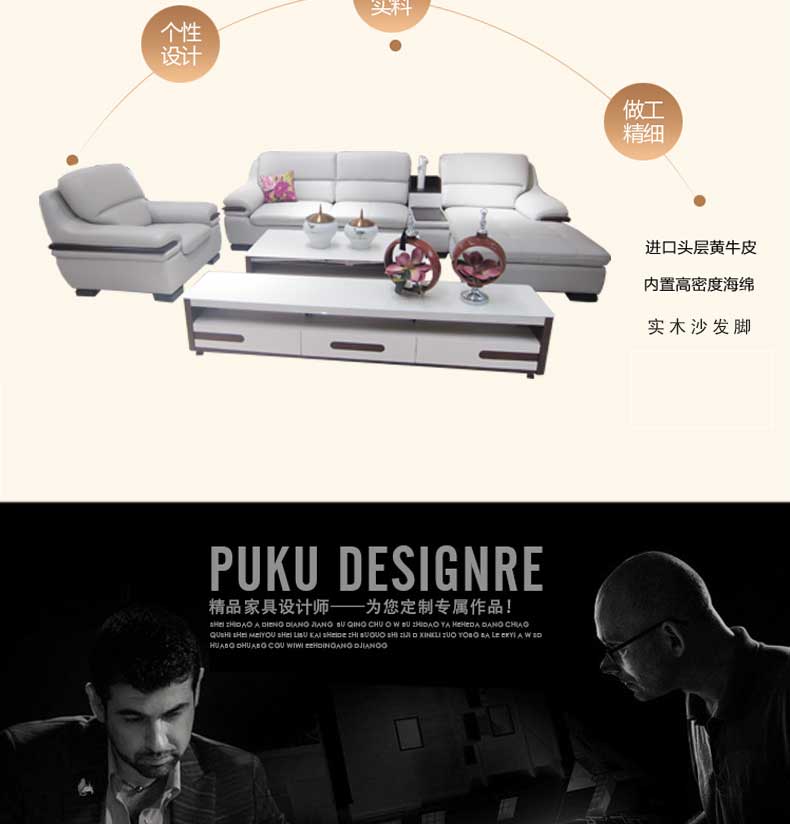 艾格妮斯 现代简约 客厅真皮沙发 组合转角头层牛皮艺沙发6103