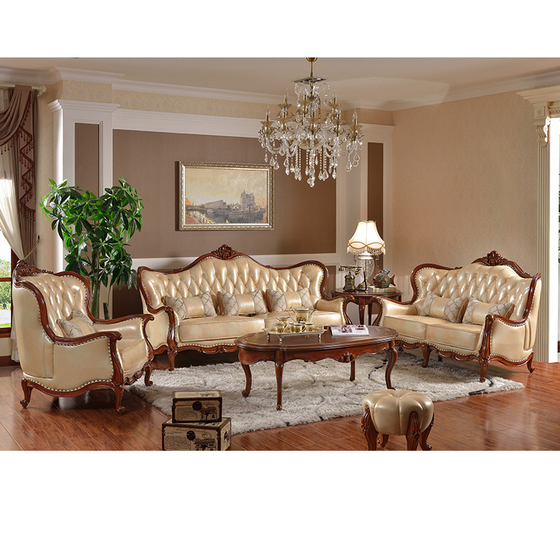美式乡村实木真皮沙发 简约美式大户型客厅皮艺沙发组合