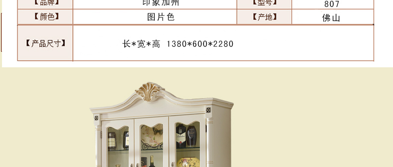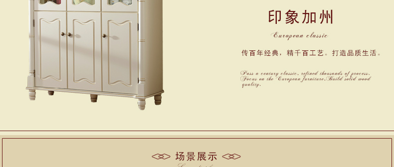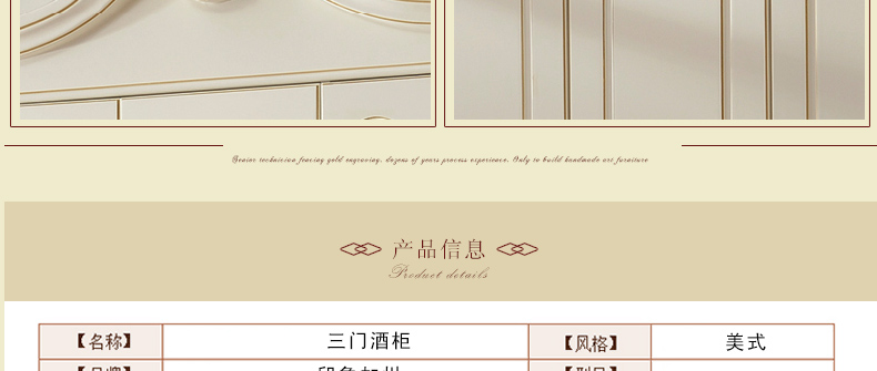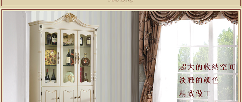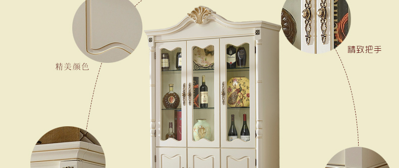 印象加州美式餐边柜 小美简约三门酒柜白色茶水柜带储物餐厅柜美式酒柜807