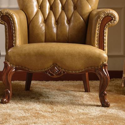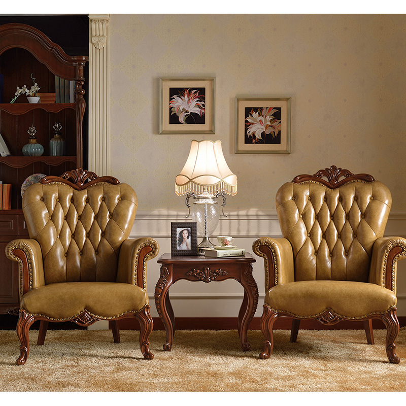 美式乡村实木真皮休闲椅 简约美式大户型客厅皮艺休闲椅