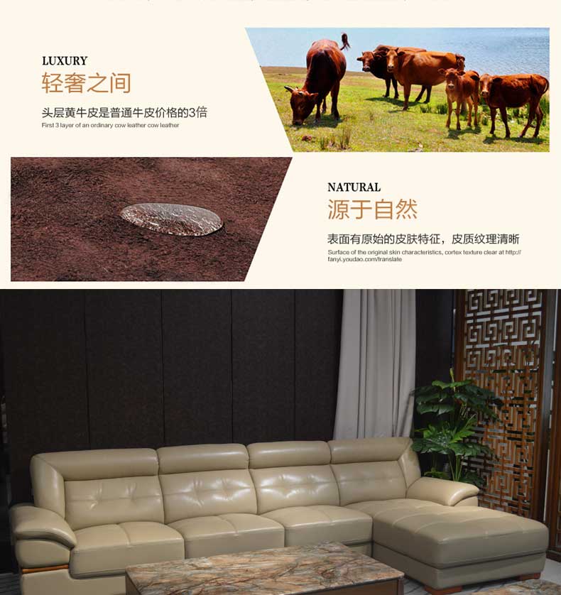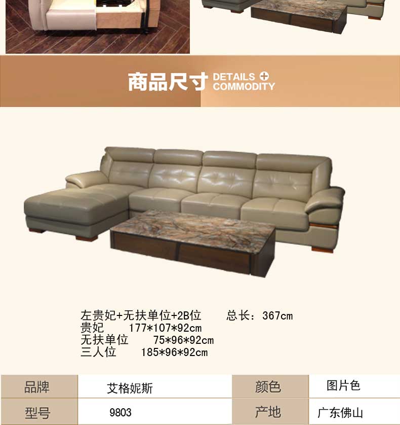 艾格妮斯 真皮沙发简约现代进口头层牛皮大小户型客厅转角贵妃组合9803沙发