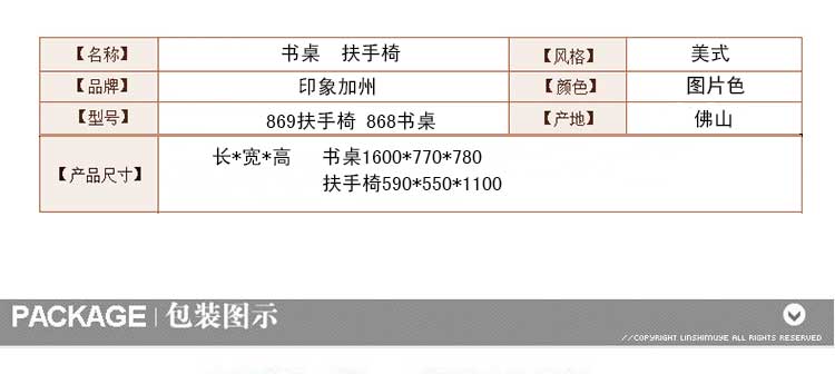 外围尺寸: 书桌1600*770*780 扶手椅590*550*1100