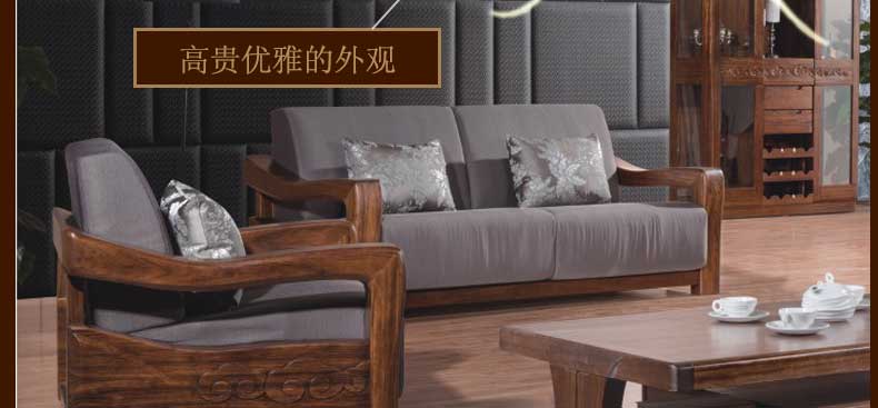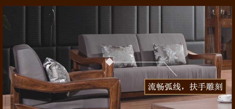 双李家具 中式实木布艺沙发组合简约客厅办公三人木质沙发全实木小户型SL-A-L-SF1
