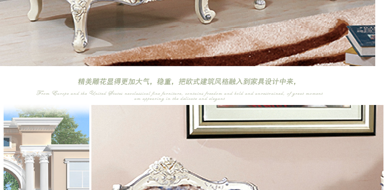 【优质造工】实木纯手工精雕雕花,描银框架,幅度型扶手,品质实木脚,承重力好。