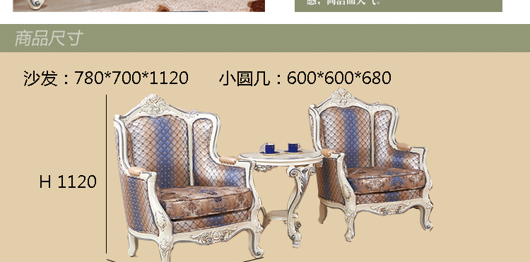 尺寸(mm)沙发长780*宽700*高1120 小圆几长600*宽600*高680