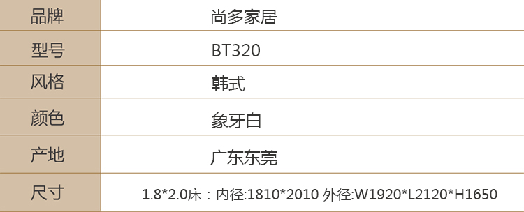 尚多家居 BT320象牙白 韩式田园 雕花软包床头1.8米双人床婚床