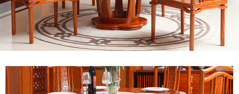 外围尺寸:餐桌直径1350*780mm 餐椅尺寸:460*560*1100mm