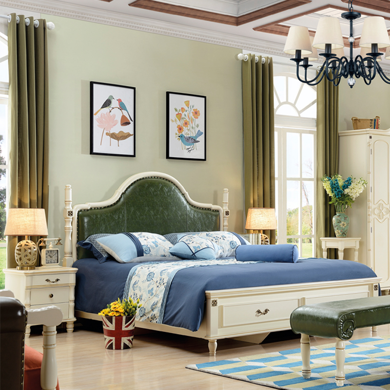 印象加州美式床地中海田园橡木床1.8米双人排骨架 高箱床607#