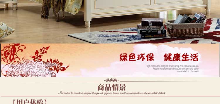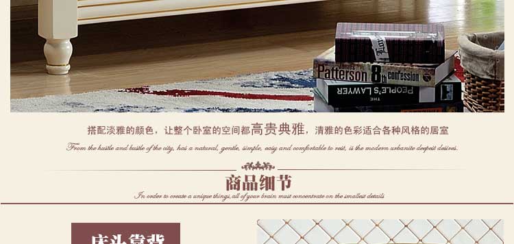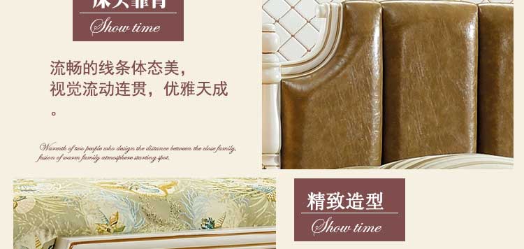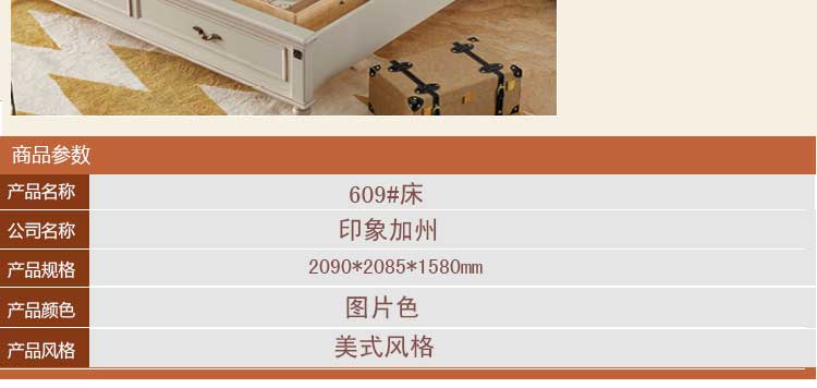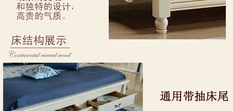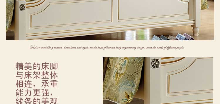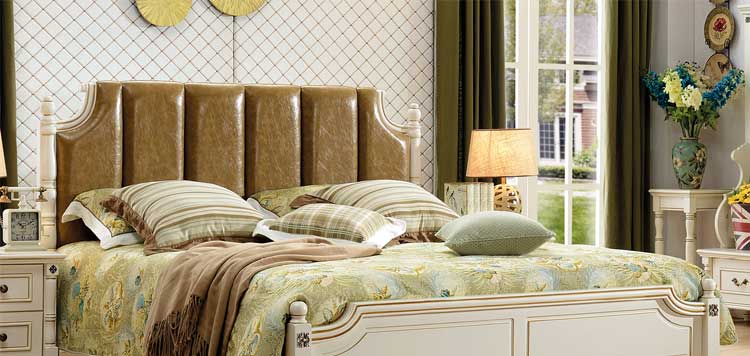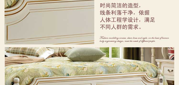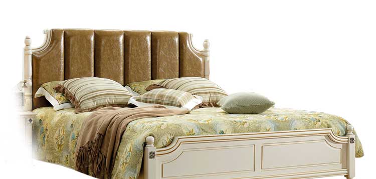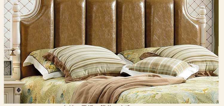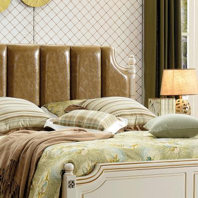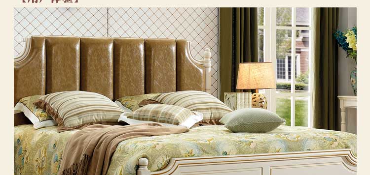 印象加州美式皮木结合床 橡木双人床白色公主床欧式1.8米婚床 卧室家具609#