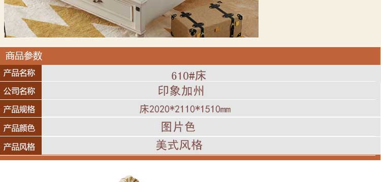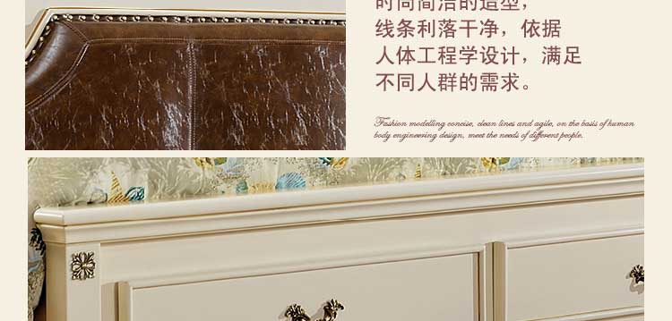 印象加州小美简约家具田园床橡木韩式欧式床 卧室美式双人1.8米婚床610#