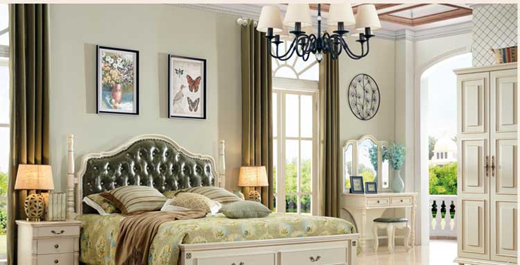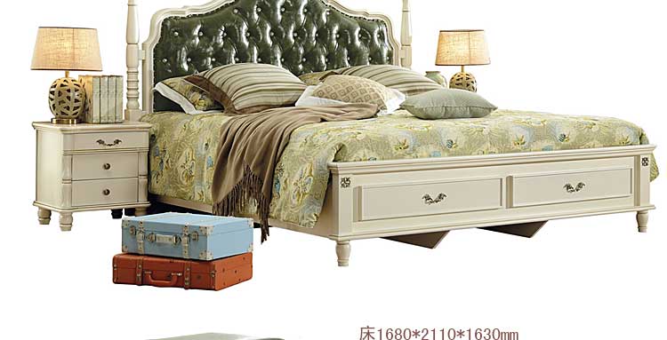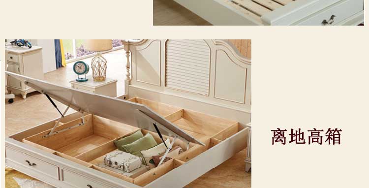 美式床双人床1.8米皮床带高箱抽储物床白色印象加州小美简约公主床612#