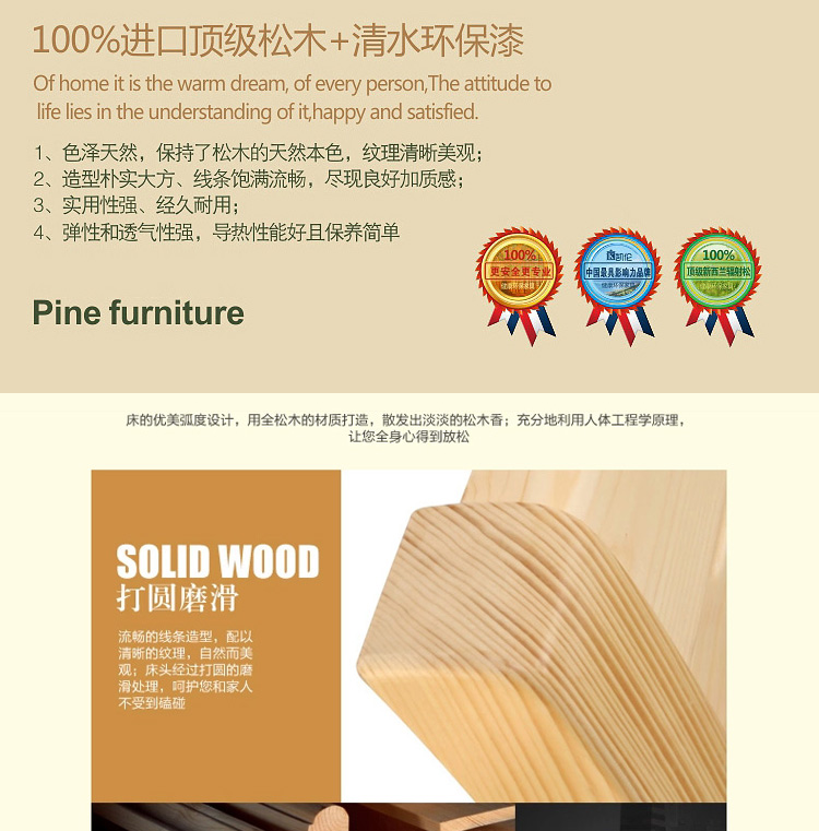 此款床,样式简单,却被大众所喜欢,采用松木制作,环保