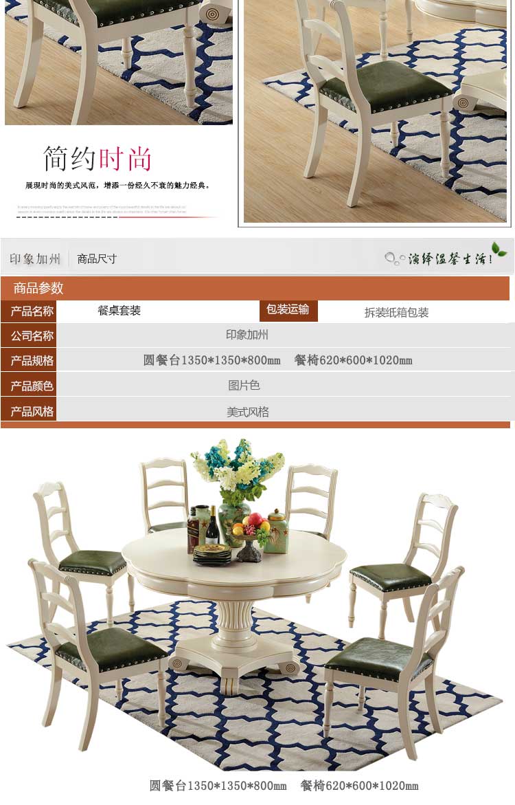 印象加州小美式乡村餐桌椅组合餐厅圆形餐桌白色简约餐桌808