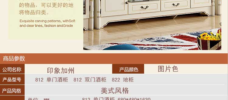 印象加州美式电视柜酒柜组合套装美式中小户型酒柜电视机柜客厅地柜822