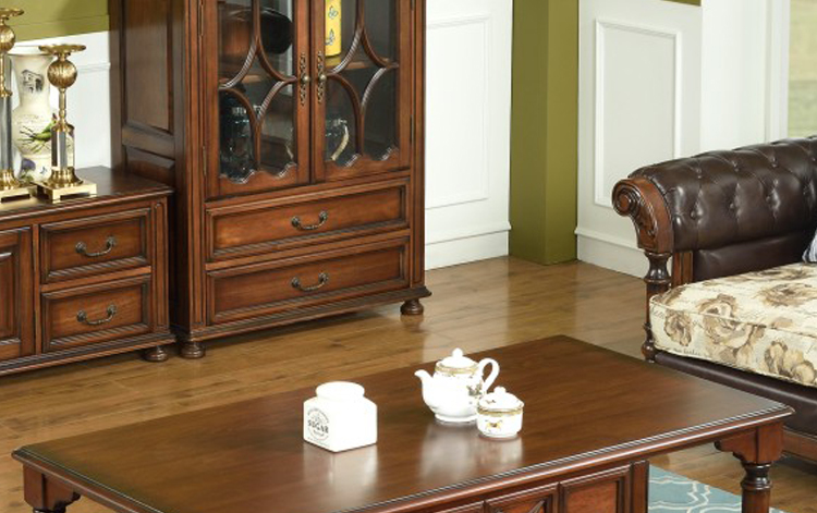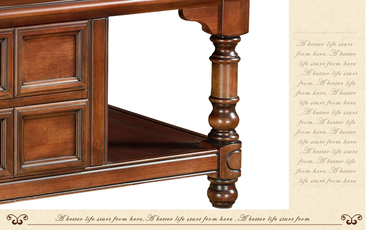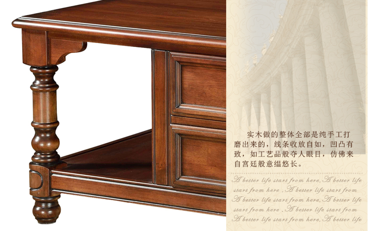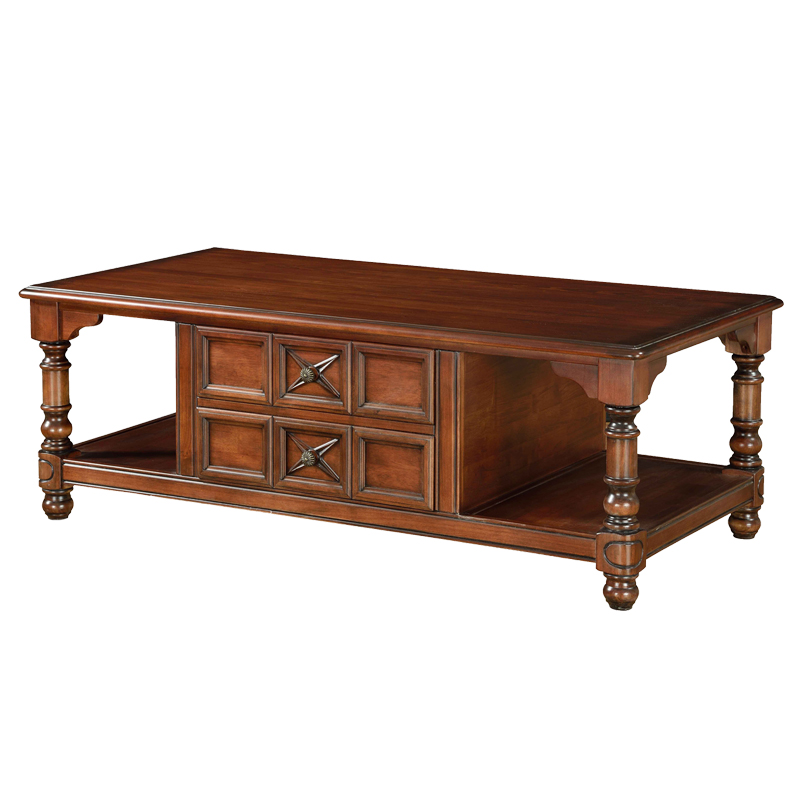 曲富美式乡村简约茶几纯实木客厅长茶几胡桃木咖啡桌抽屉储物茶几桌M8203