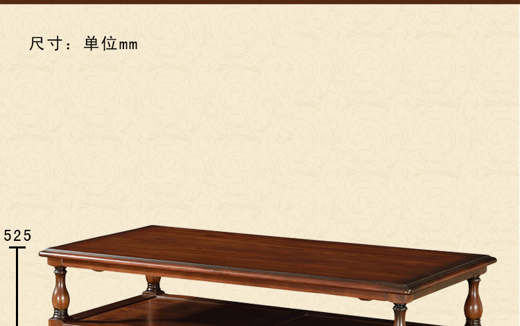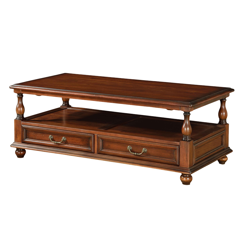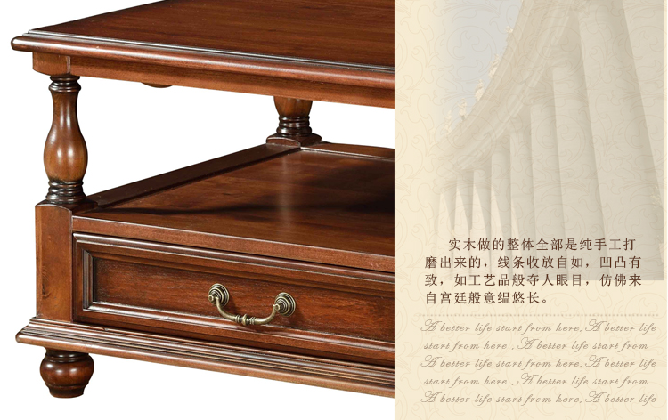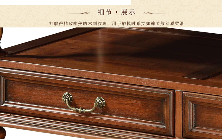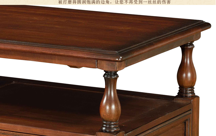 曲富美式长茶几全实木储物咖啡桌客厅美式茶几胡桃木茶水桌M8201