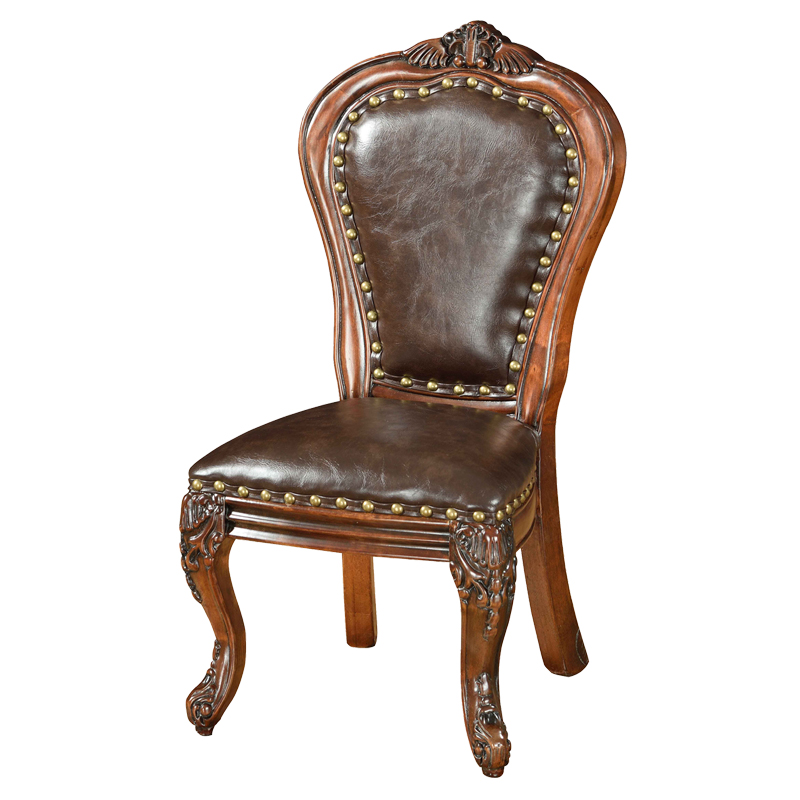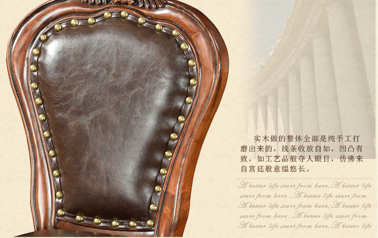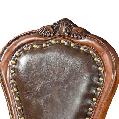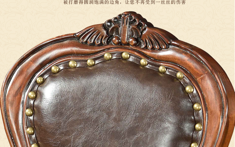 曲富美式实木餐椅酒店咖啡厅皮艺餐椅软包新古典单人椅子休闲书桌椅M6409