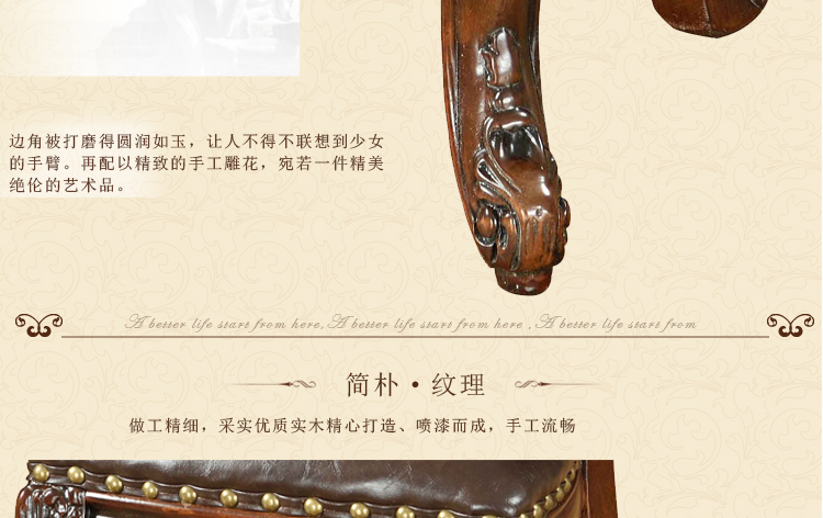 美式古老工艺技法,精雕细琢,完美极致。传达出美式风格的实木家具。木板采用的都是100%实木,防潮防腐防蛀超环保。木艺家具浑厚沉实、明朗高尚的独特韵味及风格。让您的家独具一格!