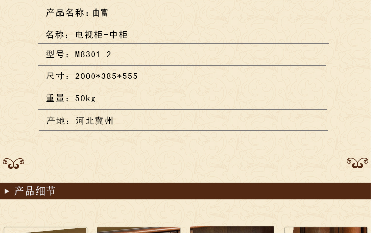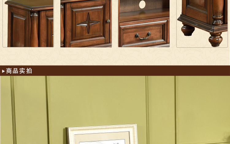 曲富美式乡村电视柜仿古客厅电视机柜复古地柜储物矮柜家具M8301-2