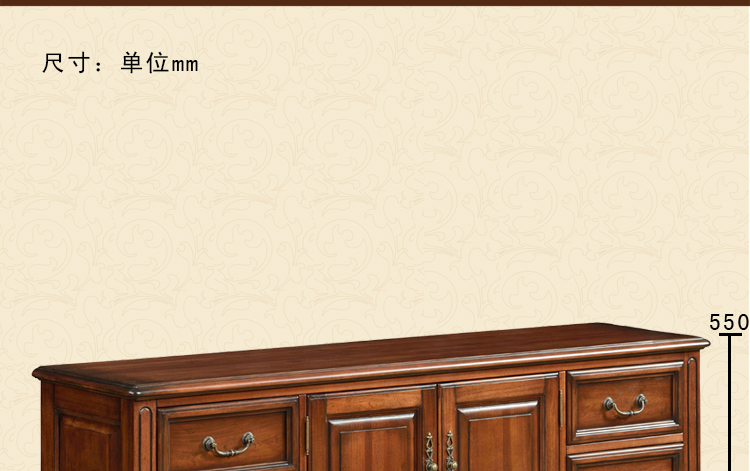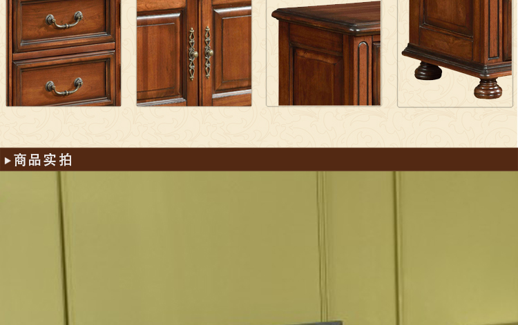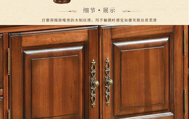 曲富美式乡村实木电视柜胡桃木地柜美式客厅家具美式电视柜M8302-2