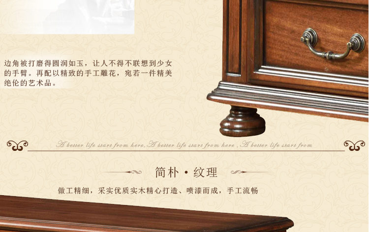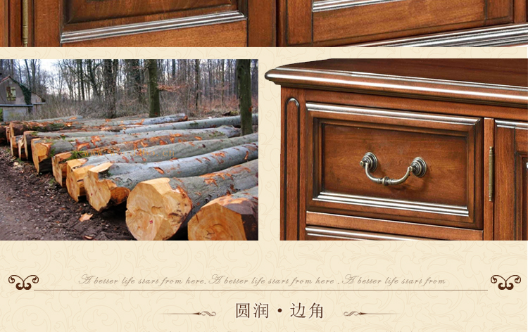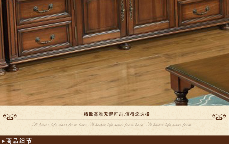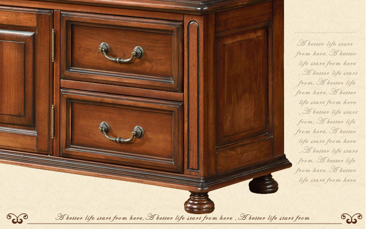 美式古老工艺技法,精雕细琢,完美极致。传达出美式风格的实木家具。木板采用的都是100%实木,防潮防腐防蛀超环保。木艺家具浑厚沉实、明朗高尚的独特韵味及风格。让您的家独具一格!