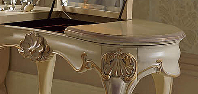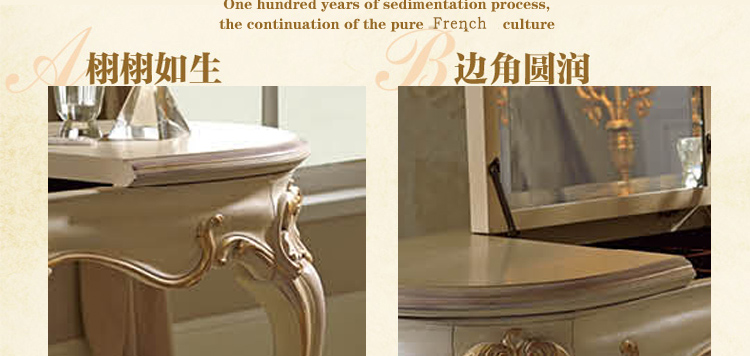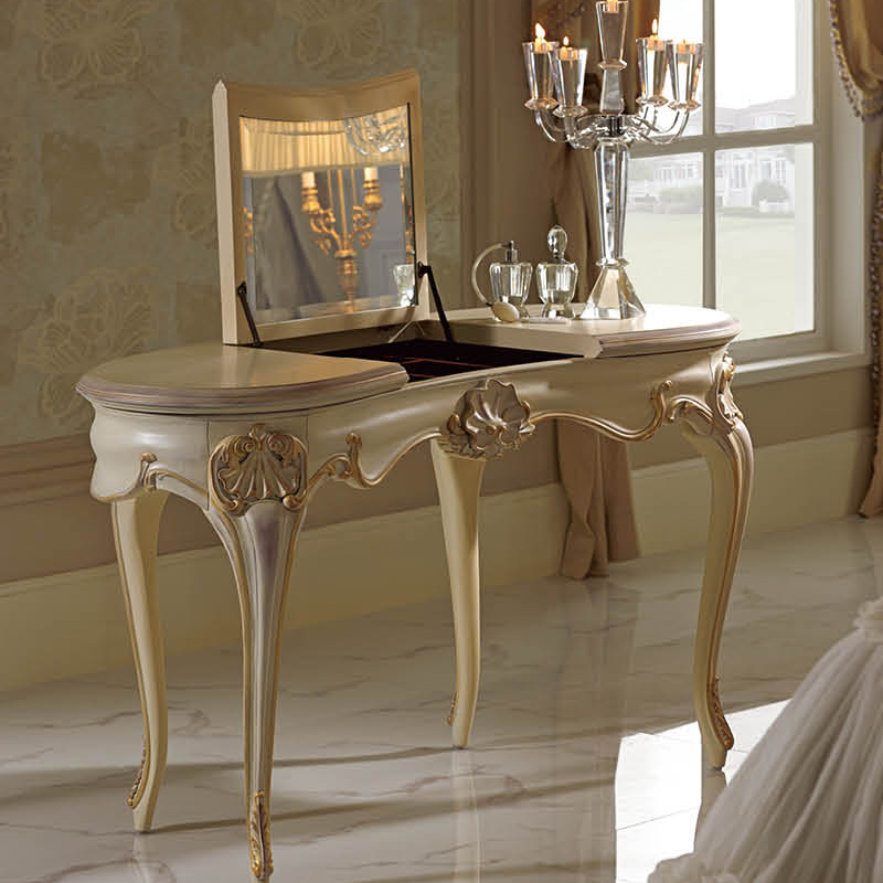 乔驰法式风格仿古白描金妆台 古典大气雕花梳妆台储物收纳妆台1T07