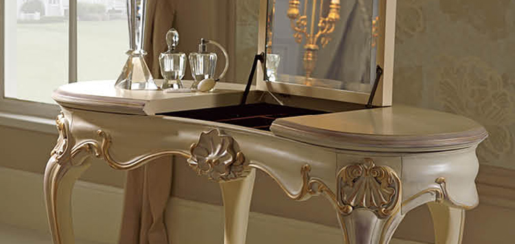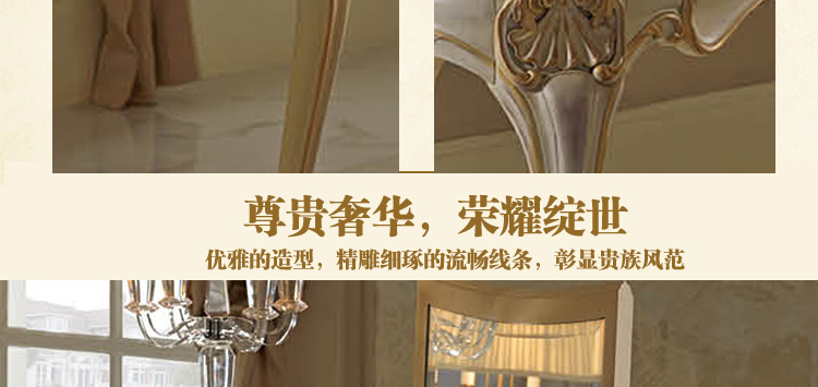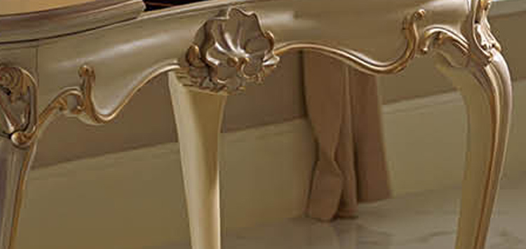 家具十分推崇优雅、高贵和浪漫,它是一种基于对理想情景的考虑,追求建筑的诗意、诗境,力求在气质上给人深度的感染。艺术风格最集中体现在家具的设计方面,要特征在于布局上突出轴线的对称,恢宏的气势,高贵典雅。细节处理上注重雕花、线条,制作工艺精细考究。