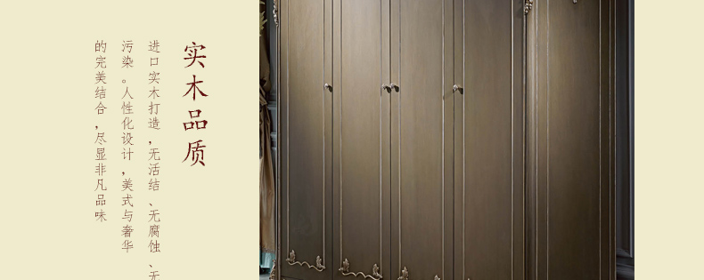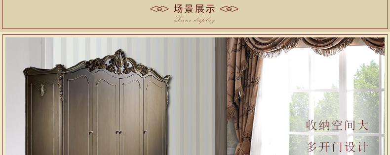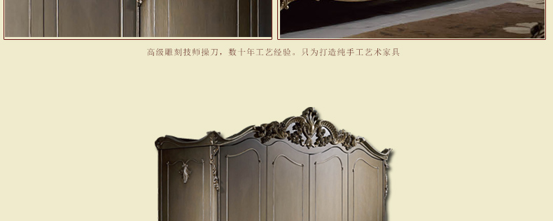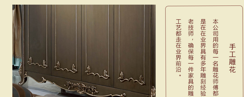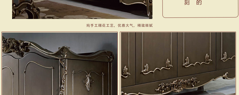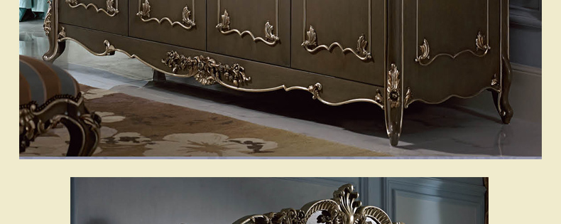 家具十分推崇优雅、高贵和浪漫,它是一种基于对理想情景的考虑,追求建筑的诗意、诗境,力求在气质上给人深度的感染。艺术风格最集中体现在家具的设计方面,要特征在于布局上突出轴线的对称,恢宏的气势,高贵典雅。细节处理上注重雕花、线条,制作工艺精细考究。