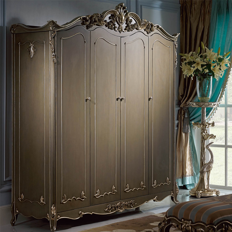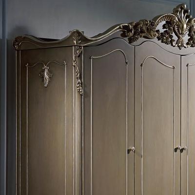 乔驰法式太空灰蓝银箔四门衣柜 卧室超大容量储物储藏趟门衣柜1D08