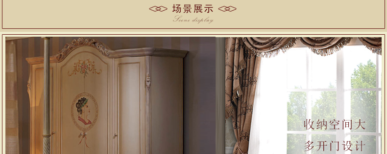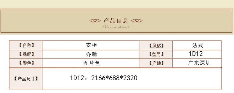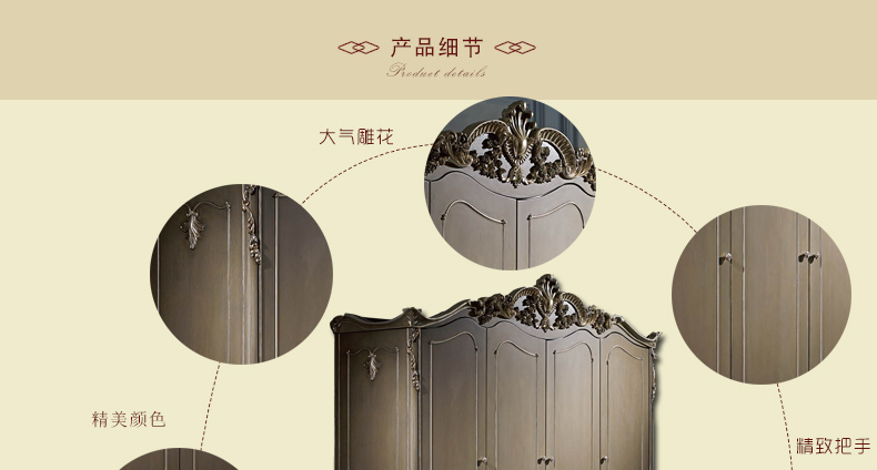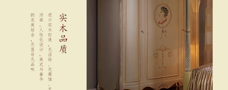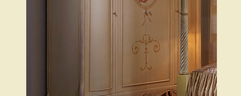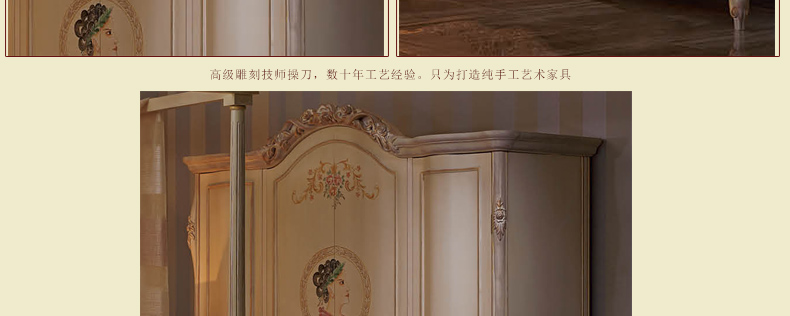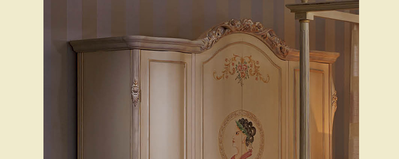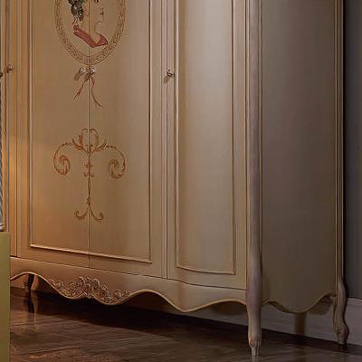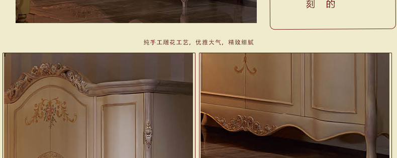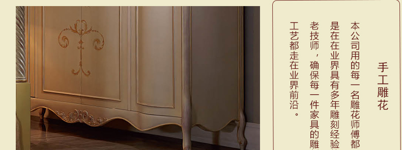 乔驰法式雕花风格趟门衣柜 仿古白描金家庭古典雕刻四门衣柜1D12