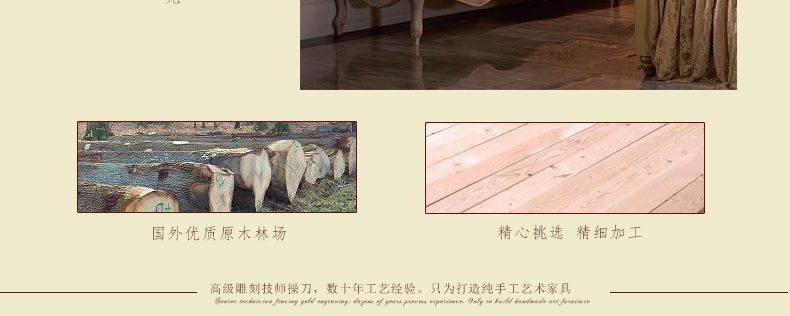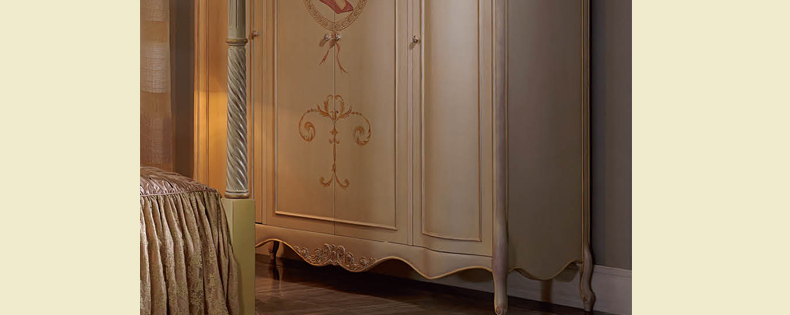家具十分推崇优雅、高贵和浪漫,它是一种基于对理想情景的考虑,追求建筑的诗意、诗境,力求在气质上给人深度的感染。艺术风格最集中体现在家具的设计方面,要特征在于布局上突出轴线的对称,恢宏的气势,高贵典雅。细节处理上注重雕花、线条,制作工艺精细考究。