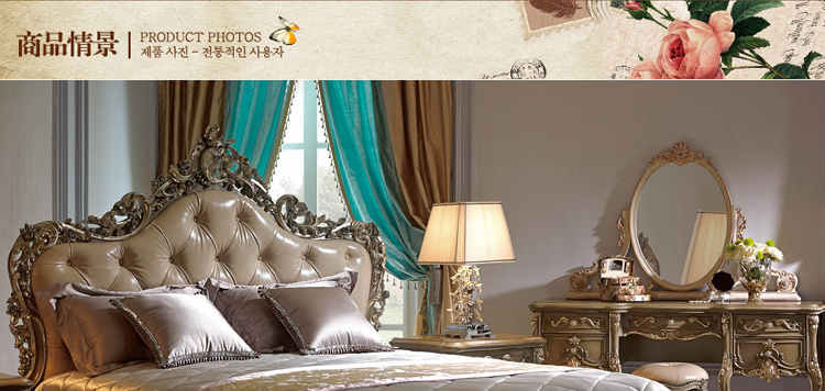 乔驰皮艺仿古法式雕花太空灰蓝银箔简约卧室家具双人床1A15-1.8