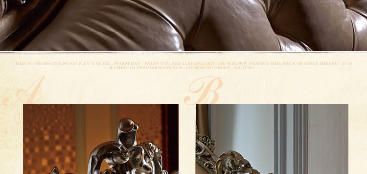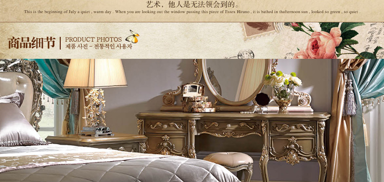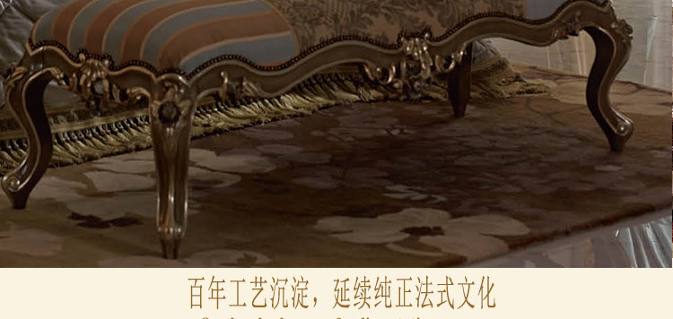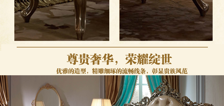 家具十分推崇优雅、高贵和浪漫,它是一种基于对理想情景的考虑,追求建筑的诗意、诗境,力求在气质上给人深度的感染。艺术风格最集中体现在家具的设计方面,要特征在于布局上突出轴线的对称,恢宏的气势,高贵典雅。细节处理上注重雕花、线条,制作工艺精细考究。