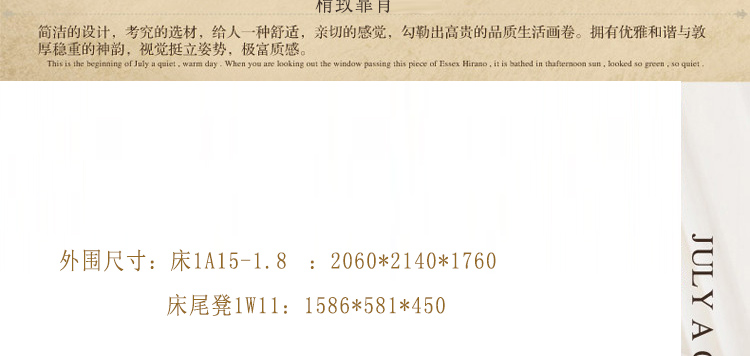 外围尺寸: 床1A15-1.8:2060*2140*1760mm; 床尾凳1W11:1586*581*450mm。