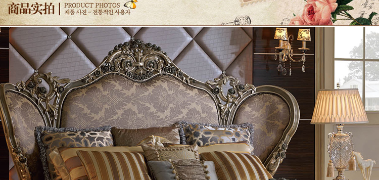 乔驰法式风格真皮双人床太空灰蓝银箔高端典雅皮艺卧室公主床1A16-1.8