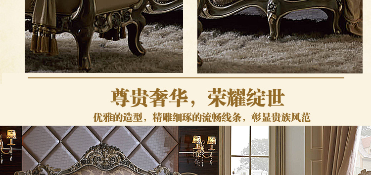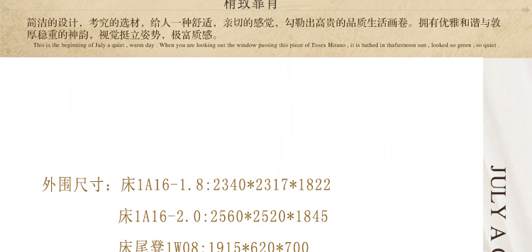 外围尺寸:床2340*2317*1822mm; 床尾凳1W08:1915*620*700mm