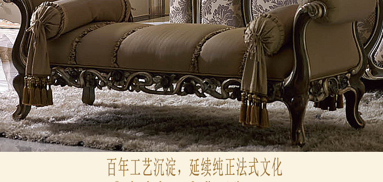 家具十分推崇优雅、高贵和浪漫,它是一种基于对理想情景的考虑,追求建筑的诗意、诗境,力求在气质上给人深度的感染。艺术风格最集中体现在家具的设计方面,要特征在于布局上突出轴线的对称,恢宏的气势,高贵典雅。细节处理上注重雕花、线条,制作工艺精细考究。
