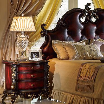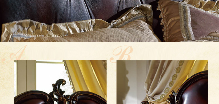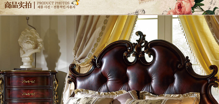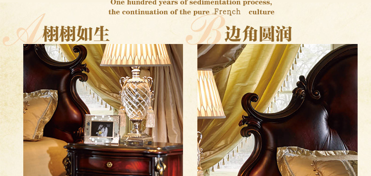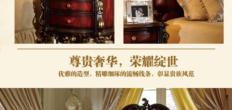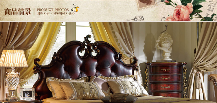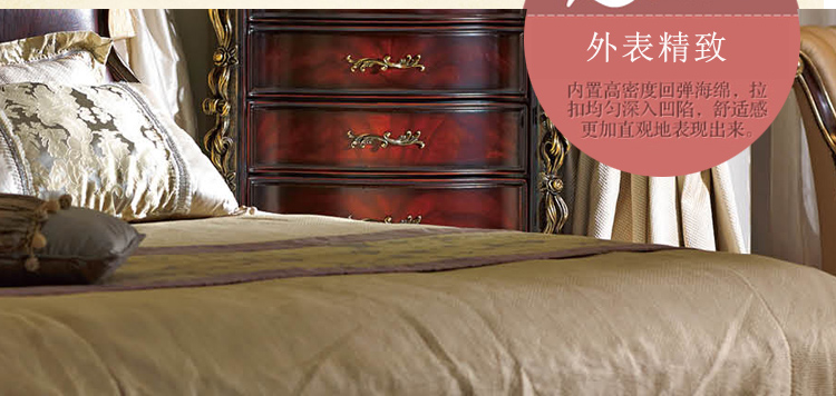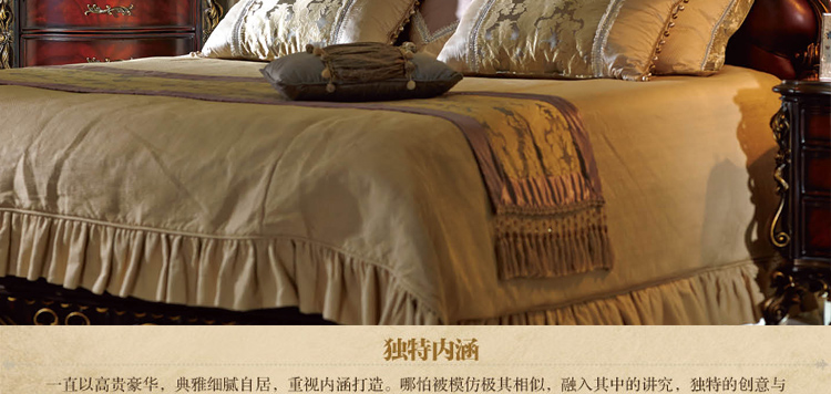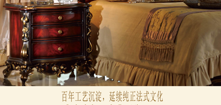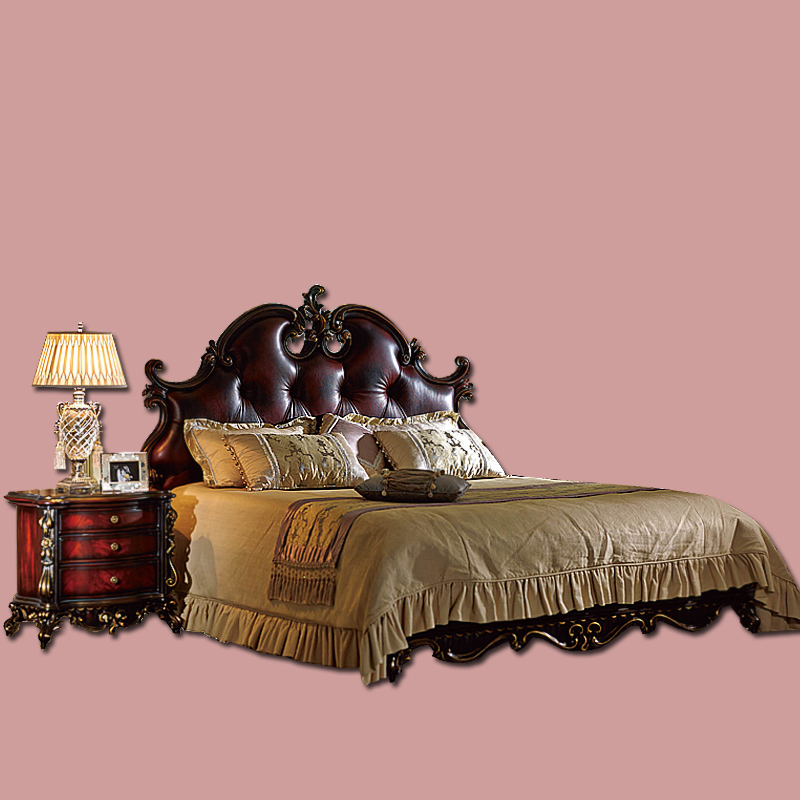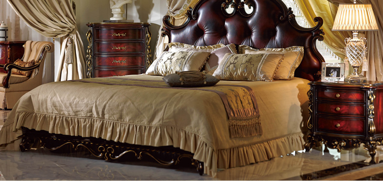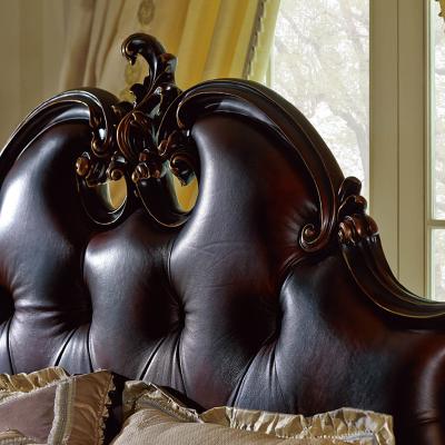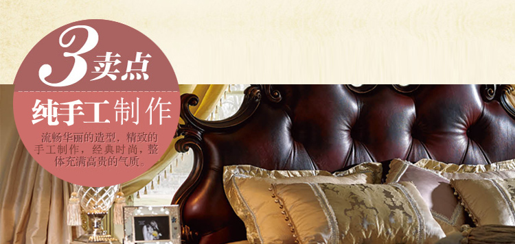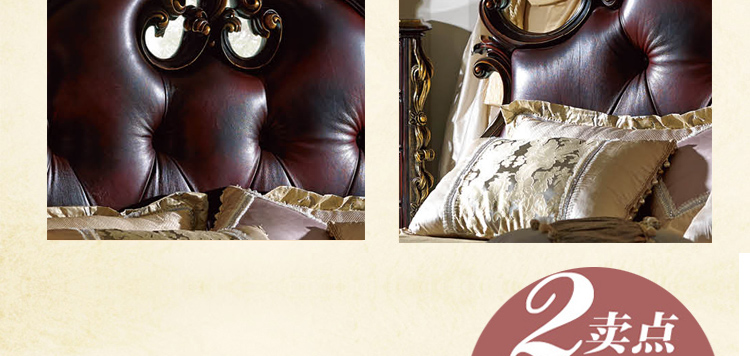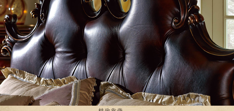 乔驰实木雕花古典真皮双人床 法式风格皮艺樱桃金箔大床1A32-2.0