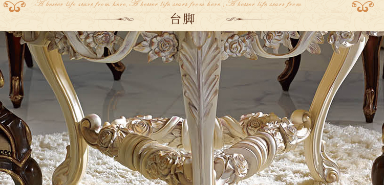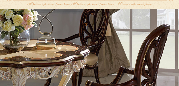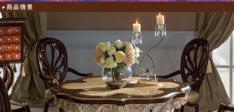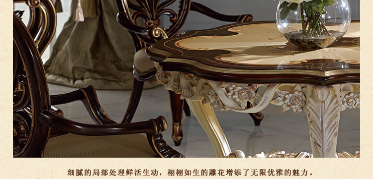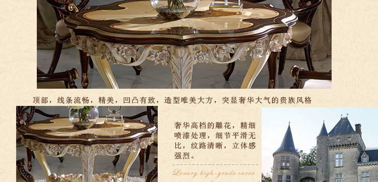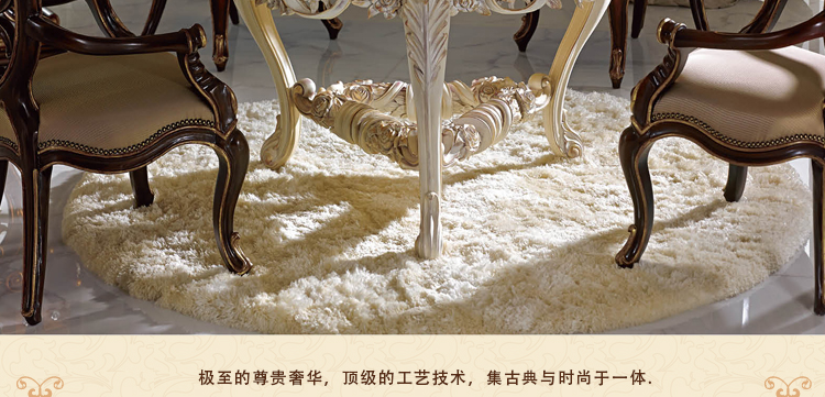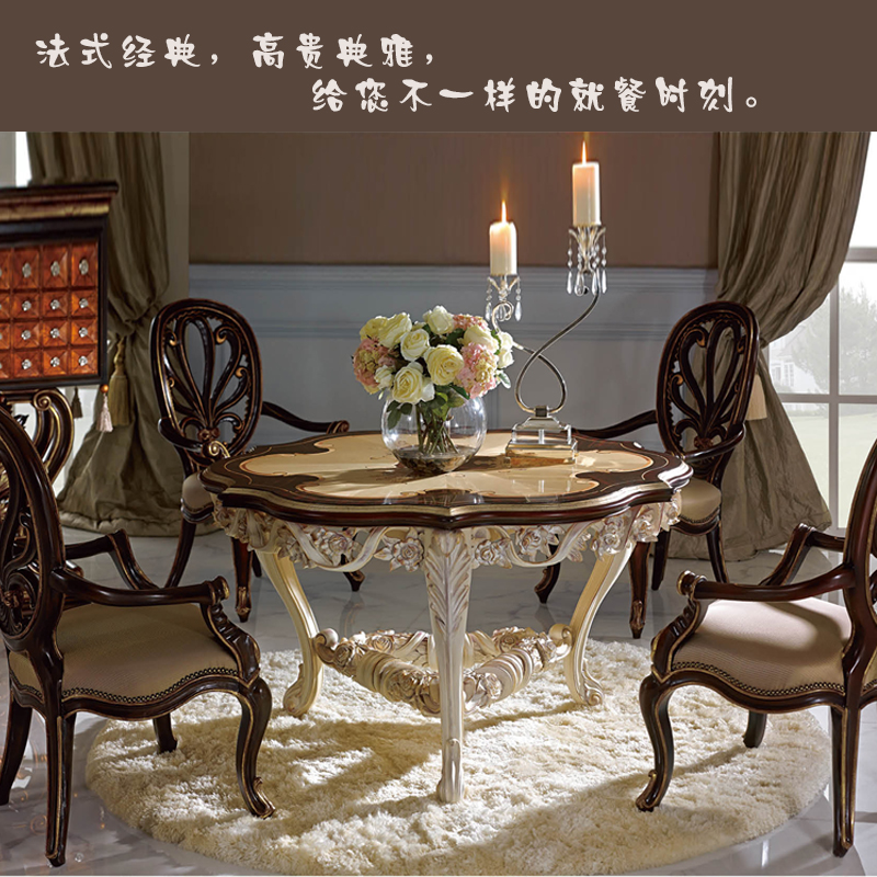 乔驰餐厅圆餐桌 典雅法式风格精致浪漫雕花餐桌餐椅1N12-1.8