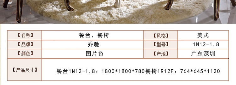 外围尺寸:餐桌1N12-1.8:1800*1800*780; 餐椅1R12F:764*645*1120。