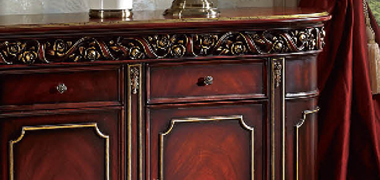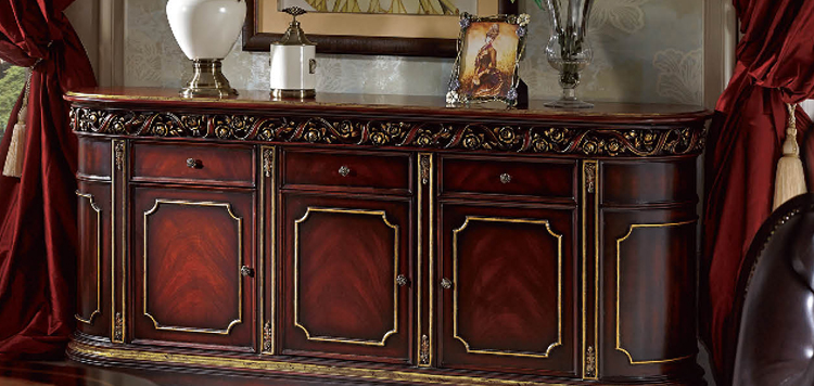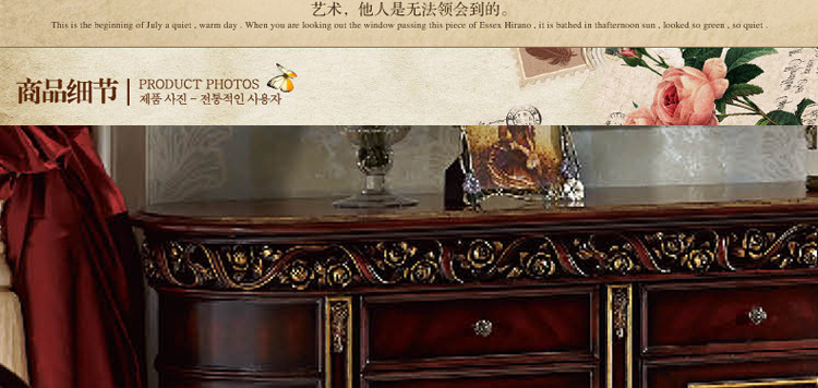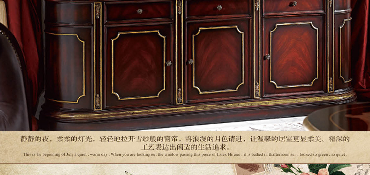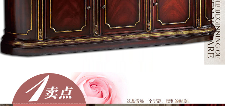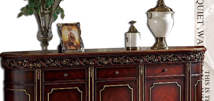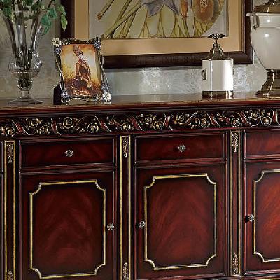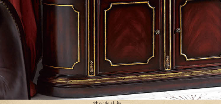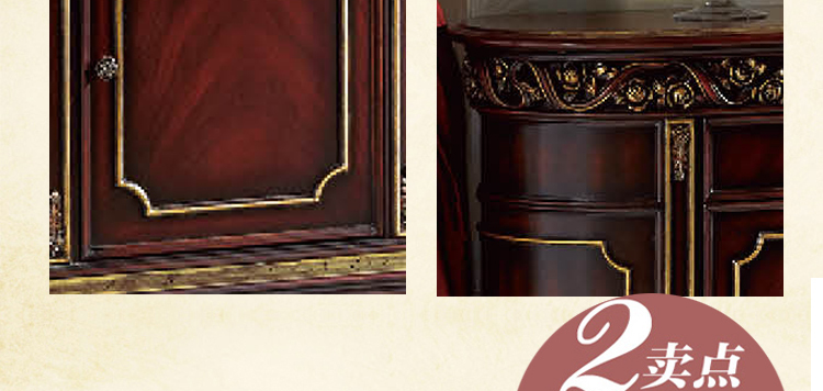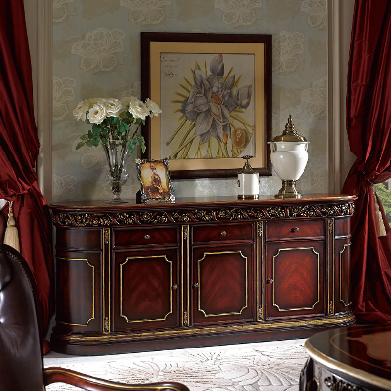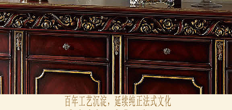 乔驰法式风格酒红金箔雕花餐厅餐边柜 古典特色储物收藏餐边柜1Y07