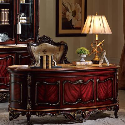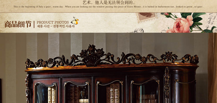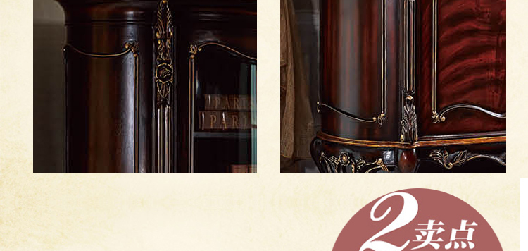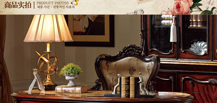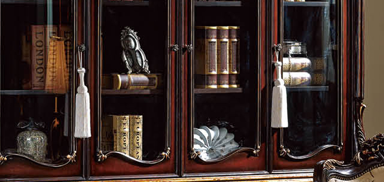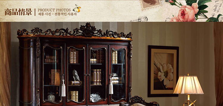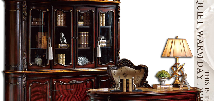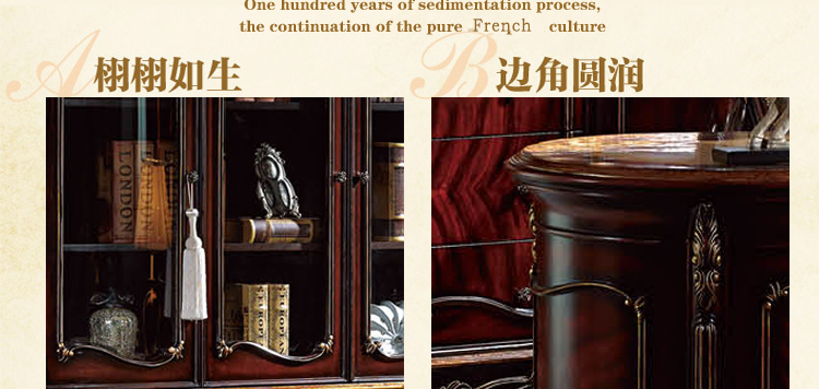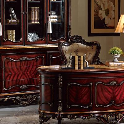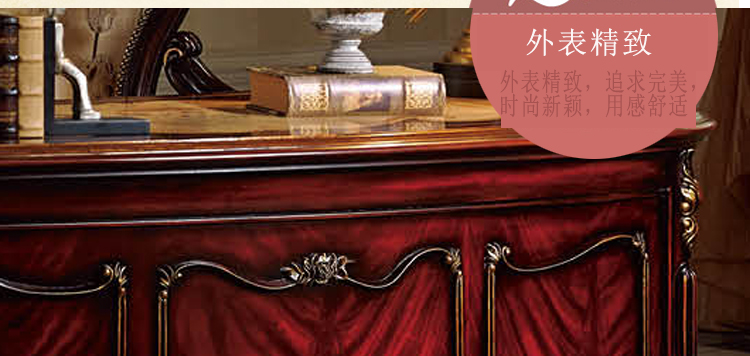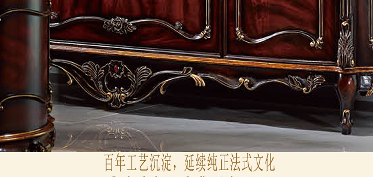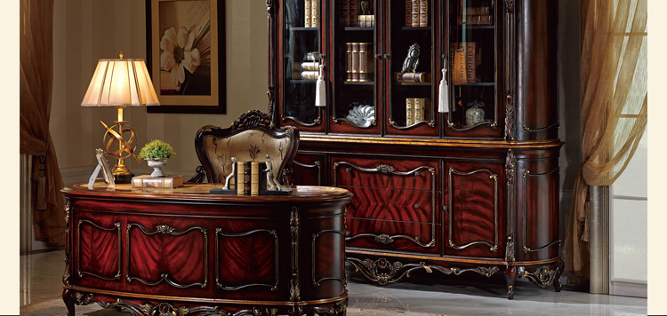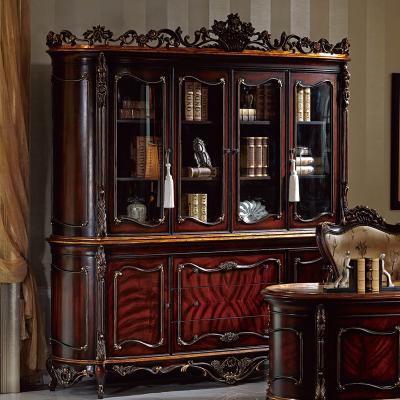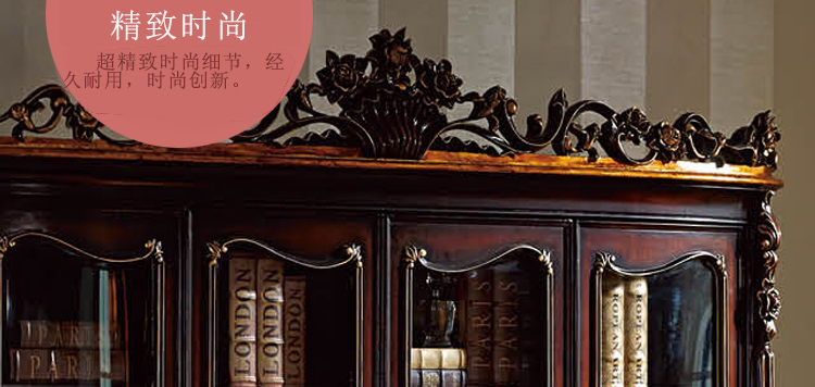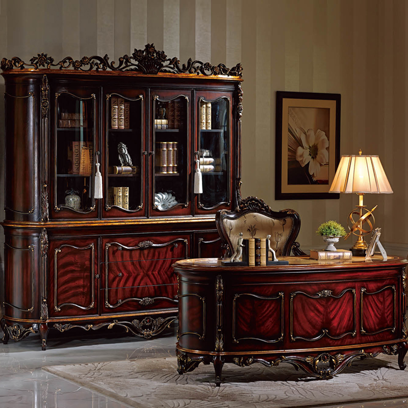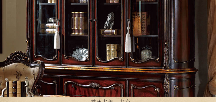 乔驰法式风格时尚古典雕花书房大容量储物酒红金箔四门书柜书台1F06