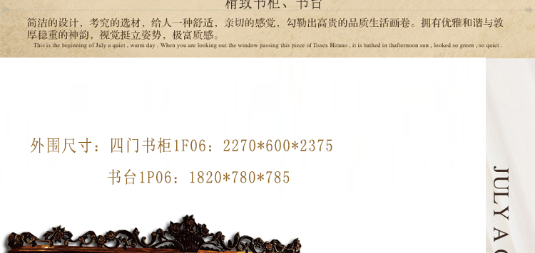 外围尺寸:四门书柜1F06:2270*600*2375mm; 书台1P06:1820*780*785mm。