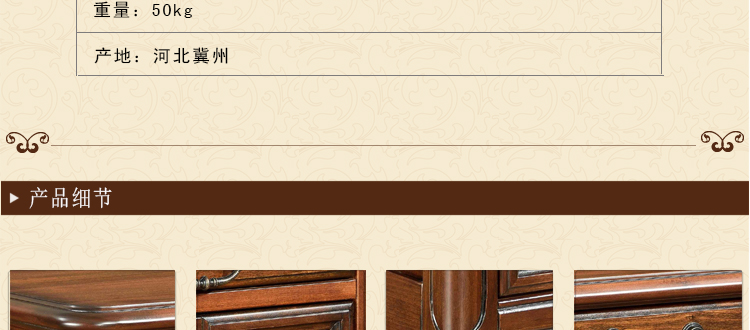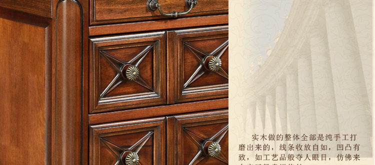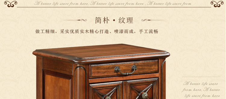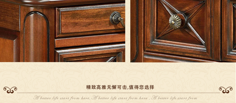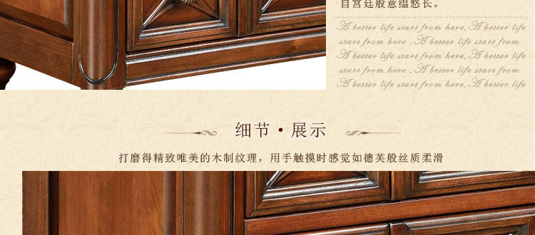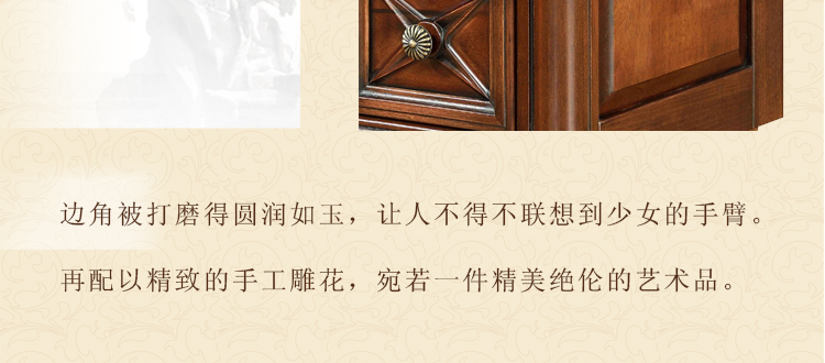 美式古老工艺技法,精雕细琢,完美极致。传达出美式风格的实木家具。木板采用的都是100%实木,防潮防腐防蛀超环保。木艺家具浑厚沉实、明朗高尚的独特韵味及风格。让您的家独具一格!