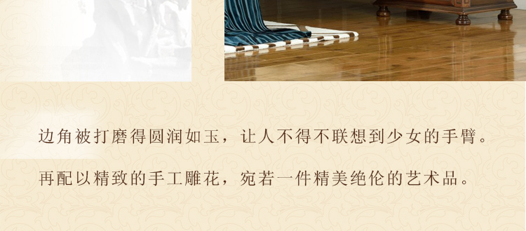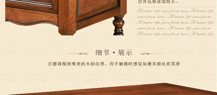 美式古老工艺技法,精雕细琢,完美极致。传达出美式风格的实木家具。木板采用的都是100%实木,防潮防腐防蛀超环保。木艺家具浑厚沉实、明朗高尚的独特韵味及风格。让您的家独具一格!